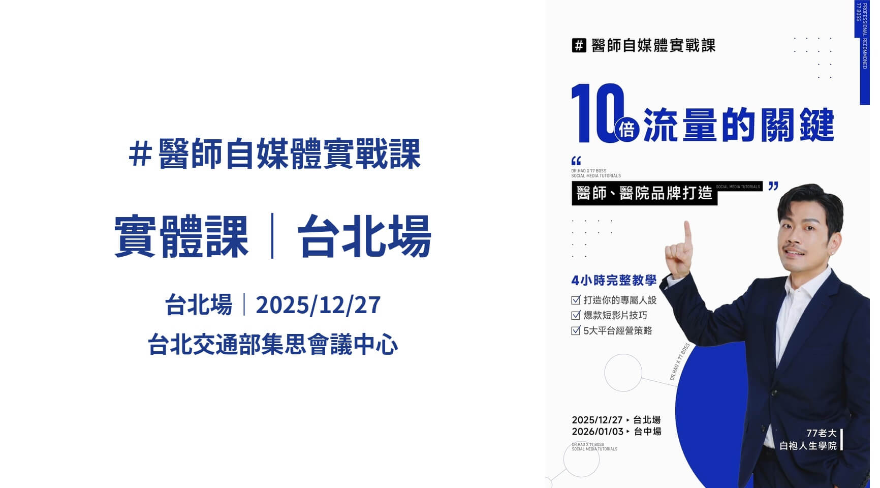 實體課程|白院 x 77老大|醫師自媒體實戰課|台北場